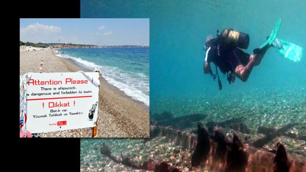 Konyaaltın'da çıkarılmayı bekleyen batık